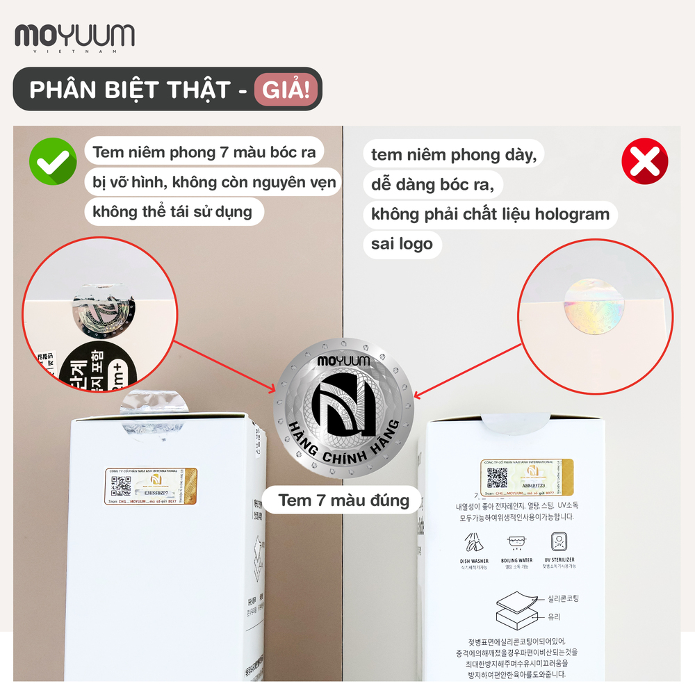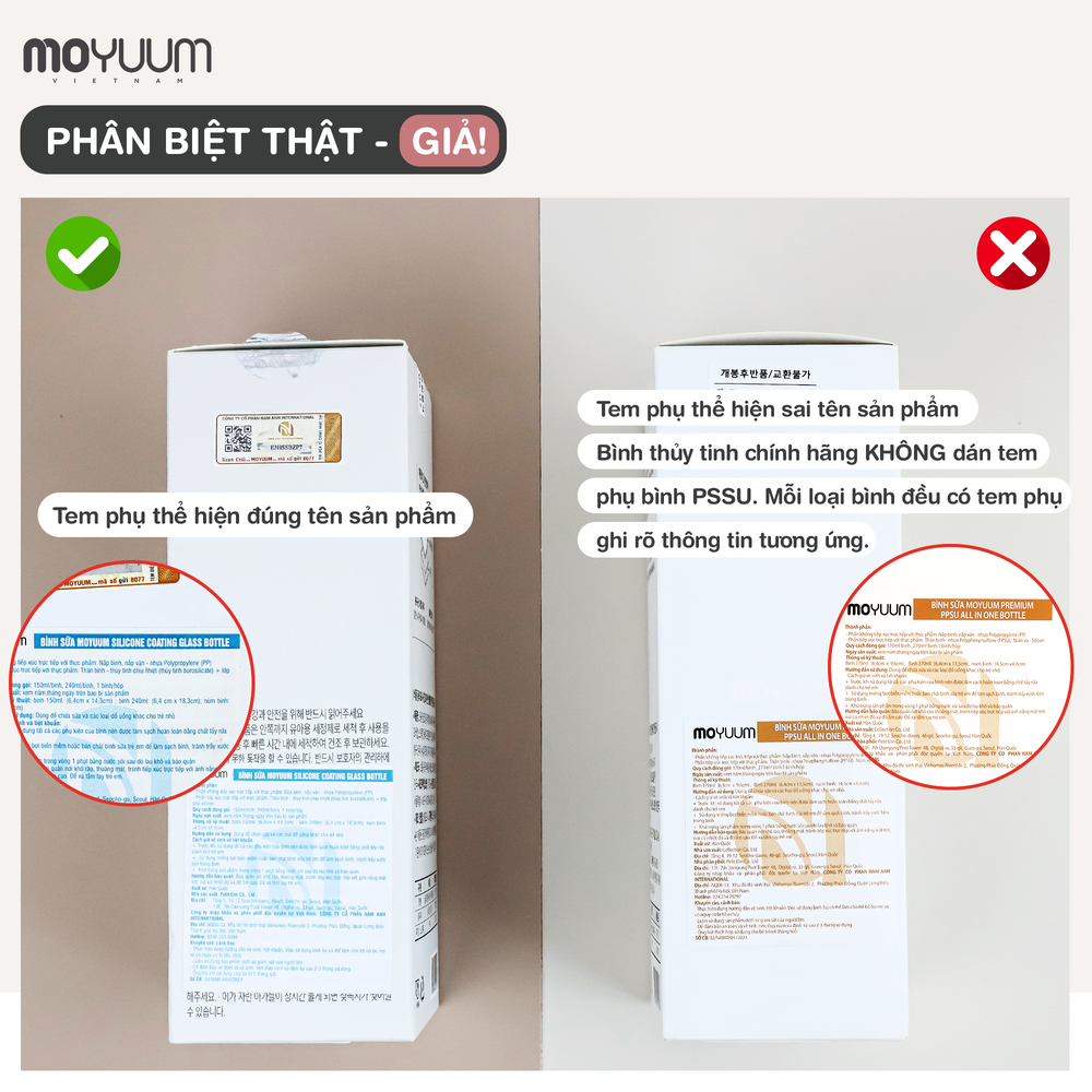 Hướng dẫn phân biệt bình sữa thủy tinh Moyuum chính hãng