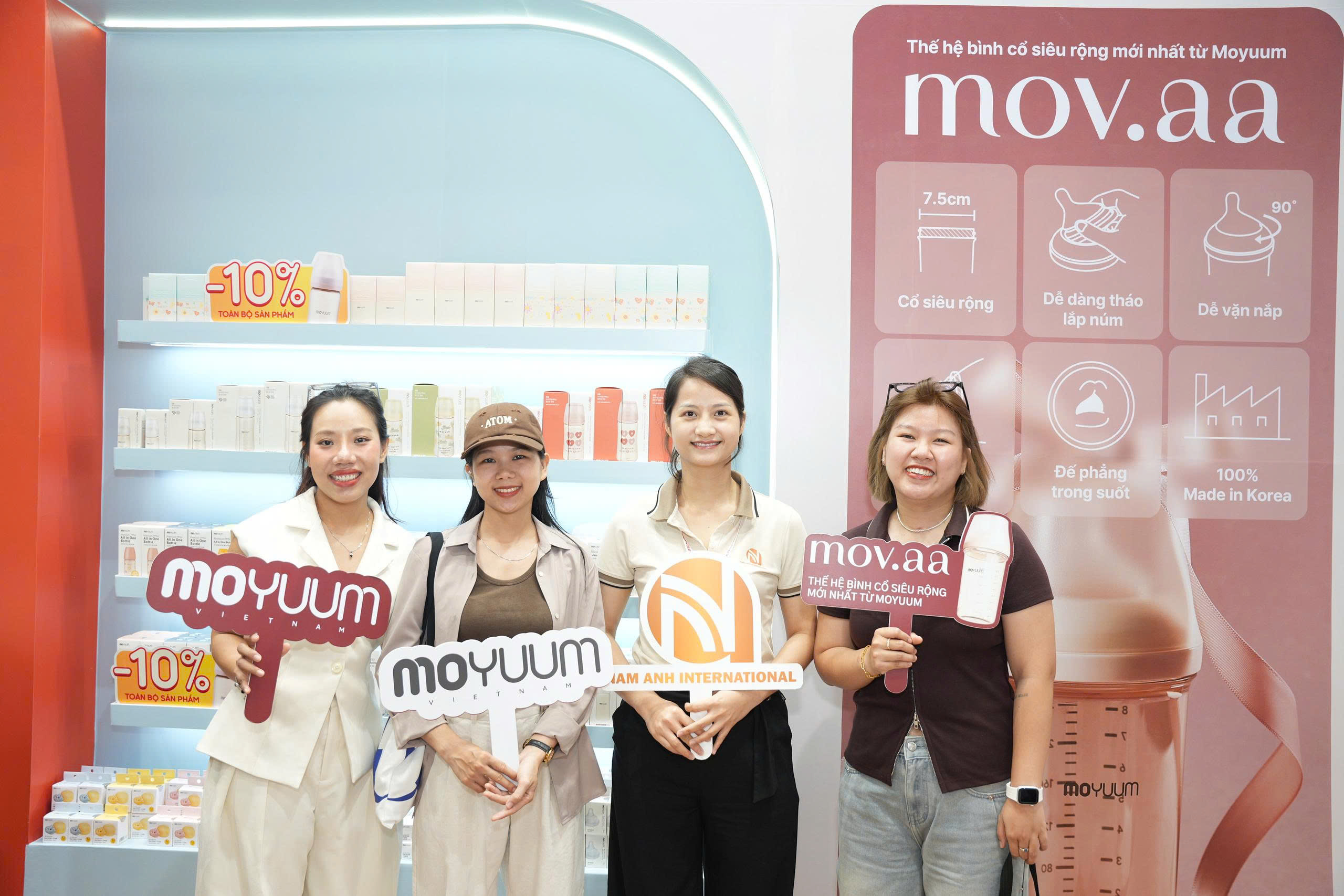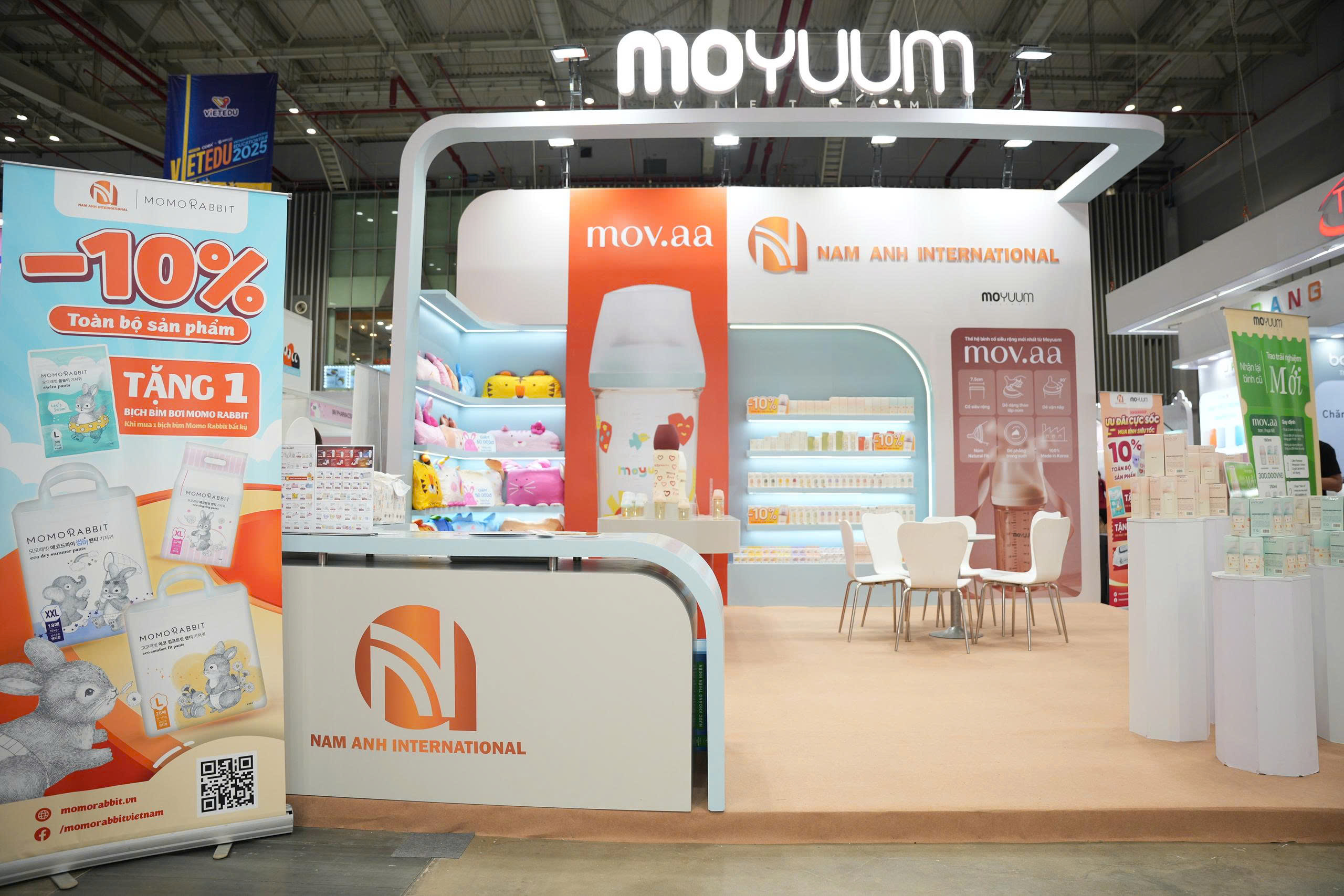 Một trong những điểm sáng nổi bật tại gian hàng Nam Anh International chính là Mov.aa Station – không gian trải nghiệm đầy cảm xúc từ thương hiệu Moyuum. Lấy cảm hứng từ hình ảnh một chuyến tàu mang theo yêu thương và hy vọng, Mov.aa Station không chỉ là nơi ba mẹ có thể chạm – nhìn – cảm nhận trọn vẹn chất lượng sản phẩm dành cho con yêu. Đây còn là “trạm khởi hành của cảm xúc”, là sợi dây kết nối giữa mẹ và con trong những toa tàu cuộc đời.